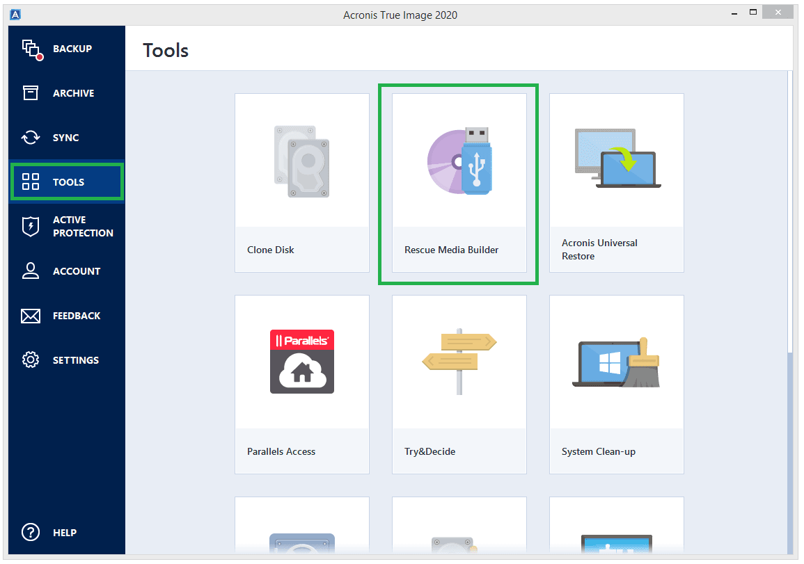 Step 1. In the Tools section, click Rescue Media Builder.