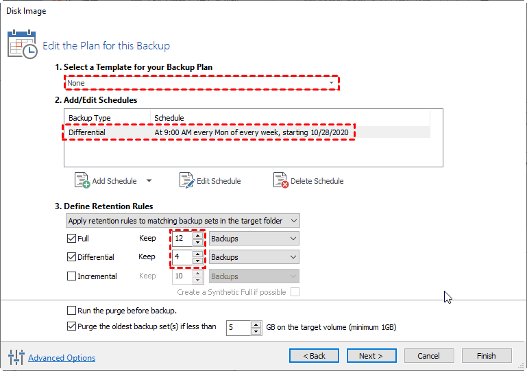 Scheme allows you to enable a backup scheme to automatically delete old backup images when the number of backups exceeds the specified amount.