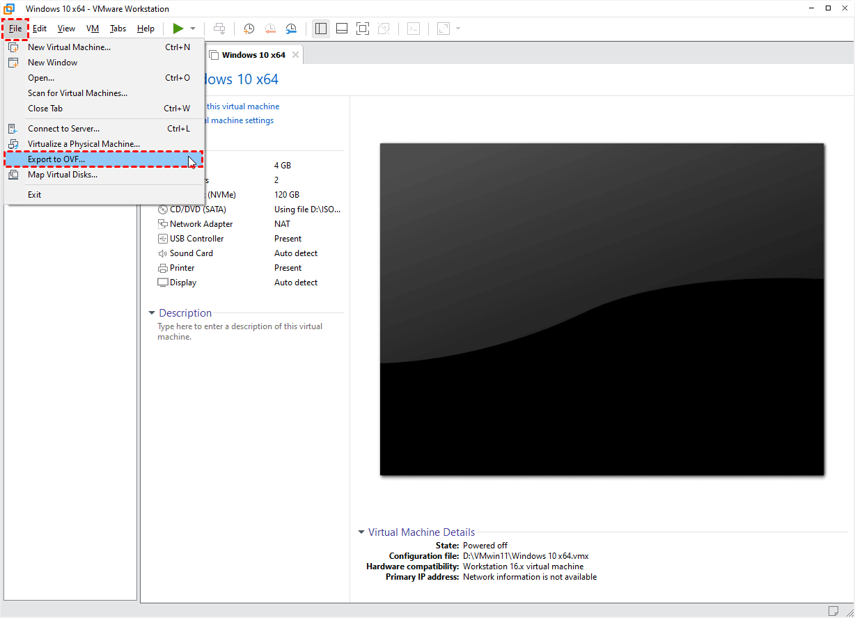 ☞ Way 2. Exporting a virtual machine (VM) to an Open Virtualization Format (OVF) template allows for the exchange of virtual appliances across different products and platforms, making it easier to share and deploy VMs. This file format also compresses data, resulting in faster downloads.